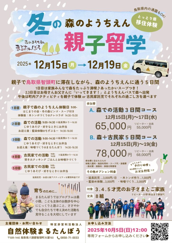 | 申込方法 | 冬の森のようちえん留学専用申し込みフォームから 2025年10月5日(日)12:00〜※先着順 |